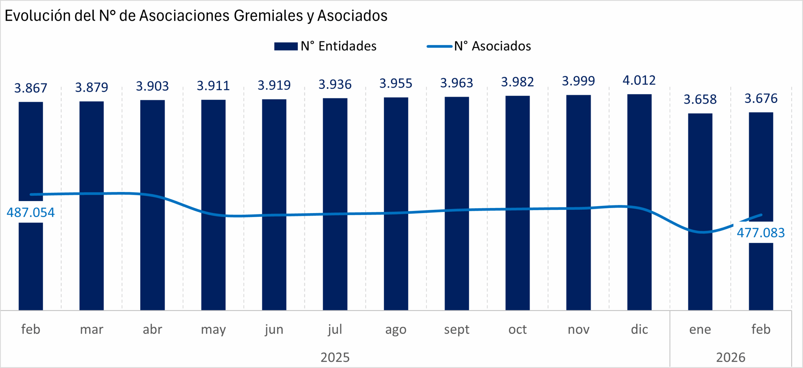 Respecto de la base societaria, esta alcanzó 477.083 personas, registrando una disminución interanual de -2,0%. Los mayores descensos se observan en los rubros Industria, con 13.412 personas (-10,0%), y Agrícola, con 19.210 personas (-7,4%).